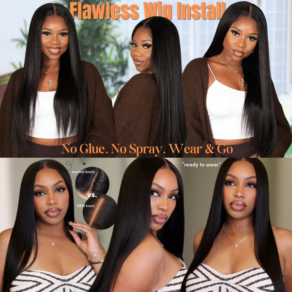 Experience the ultimate convenience with the UNICE Hair Yaki Straight Wig. This glueless, pre-cut, bleached, and plucked lace wig offers a natural look and effortless install, saving you time and hassle while delivering flawless style