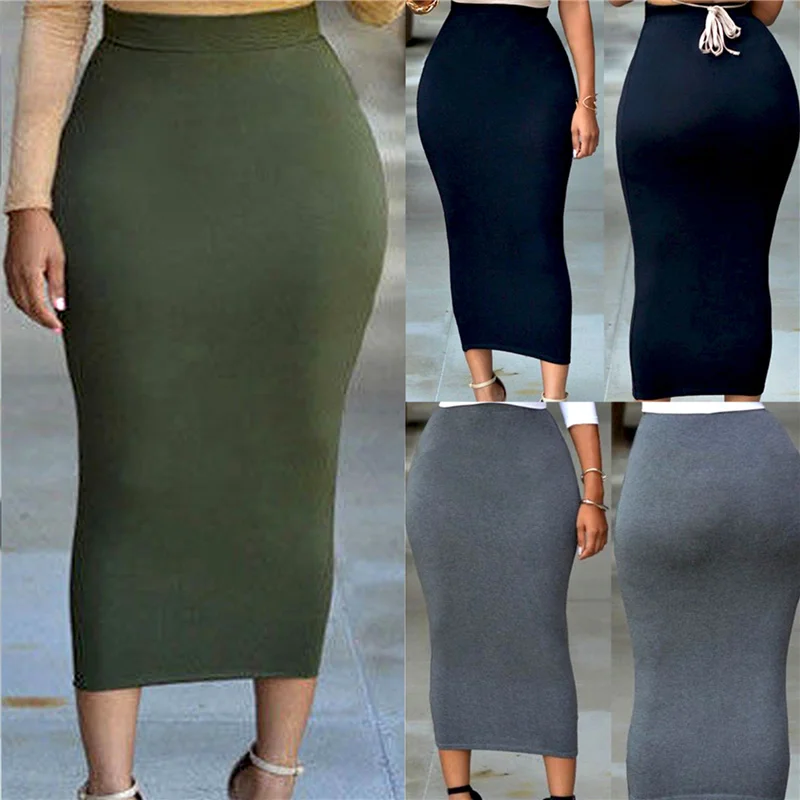 Women Pencil Skirt, Solid Color Elasticated Waist Band Maxi Skirts, High Waist Bodycon Half Dress, Sexy Party Bar Skirt