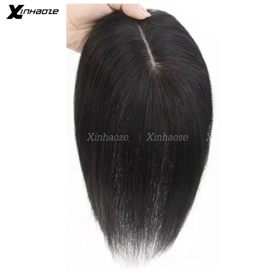 Silk Base Black Human Hair Topper Natural Color Human Hair Topper Hair Size 8x12cm Hair Toppers for Women No Thinning Hair