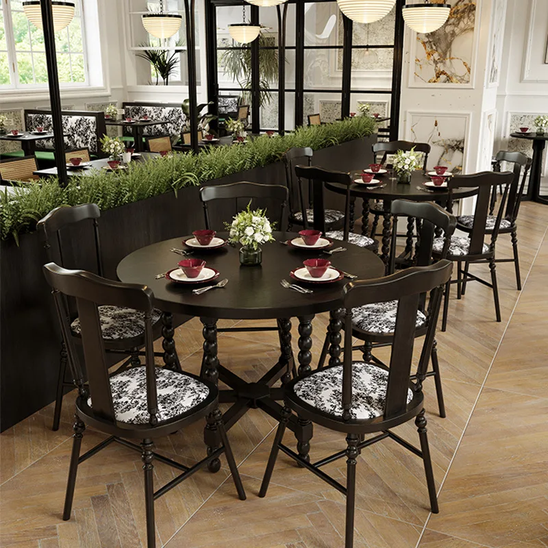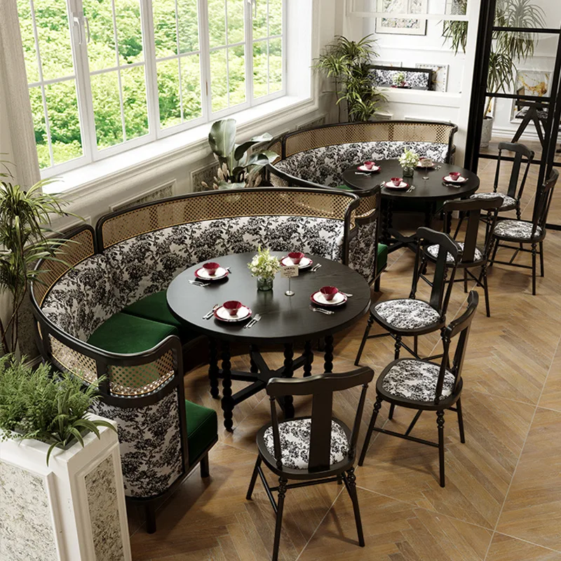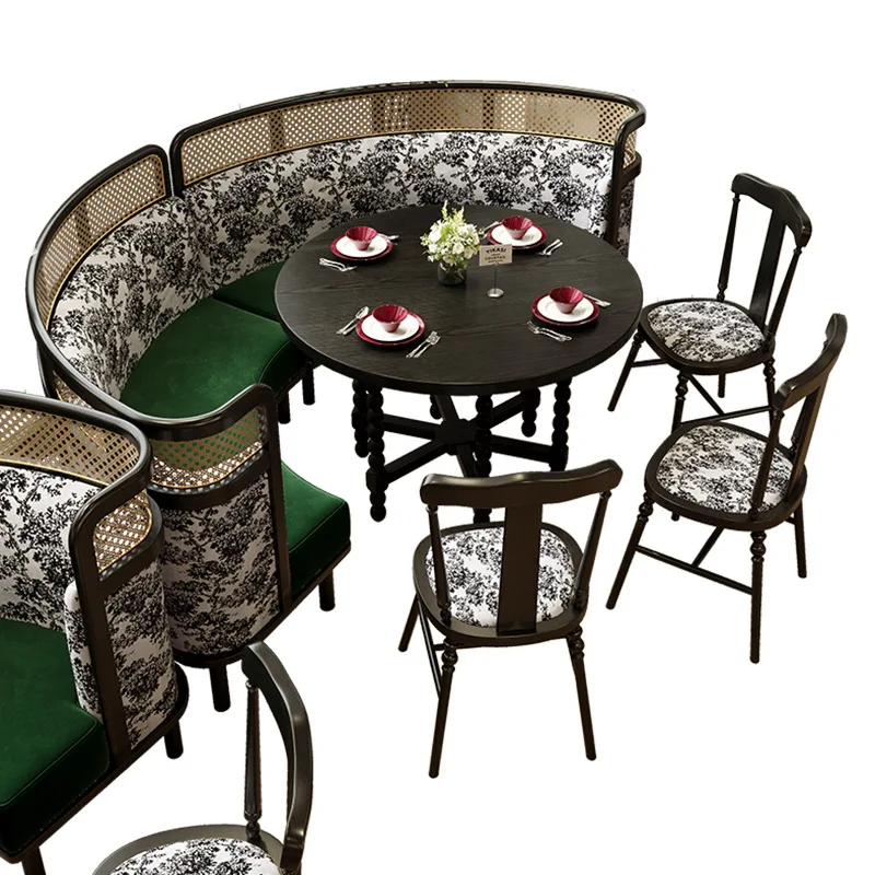 Enjoy luxurious comfort and timeless style with our Retro Solid Wood Round Table set. The solid wood construction ensures lasting durability, while the soft pack dining chairs and booth sofa provide exceptional comfort for a truly enjoyable dining experience