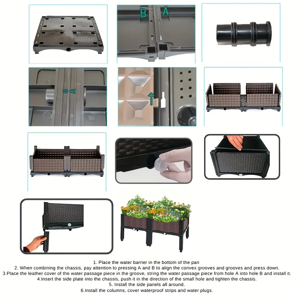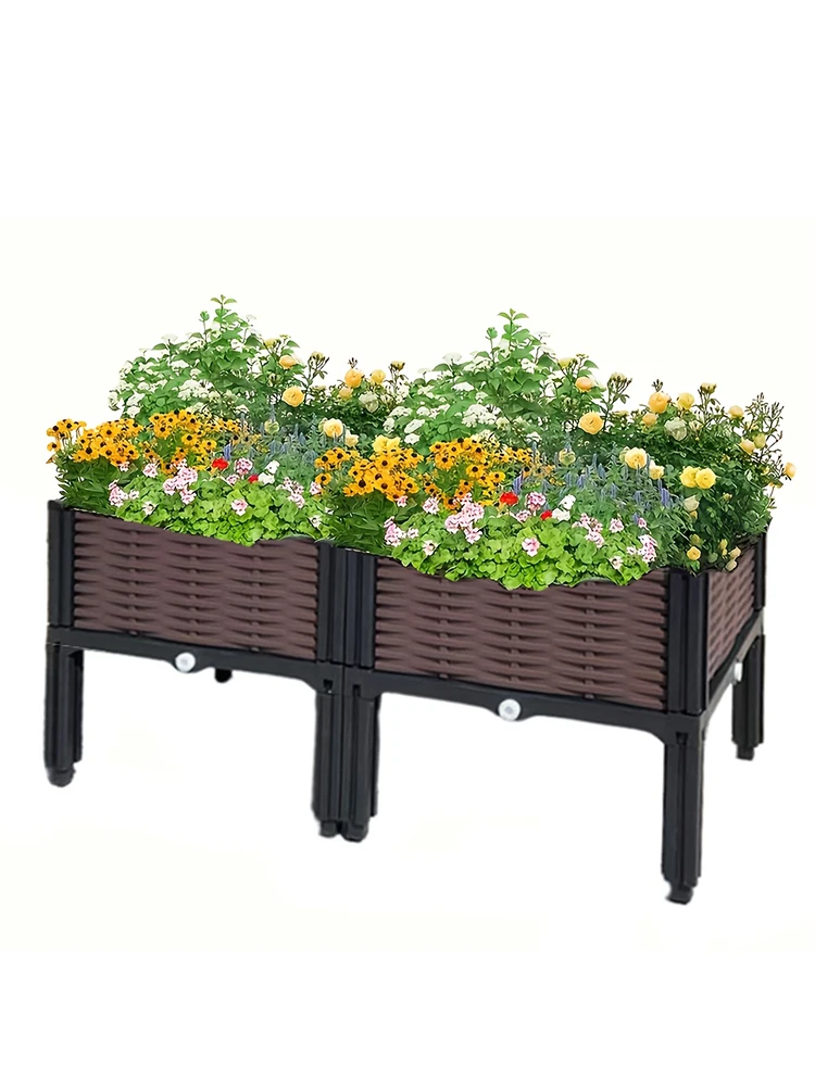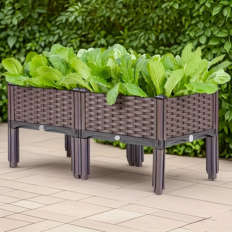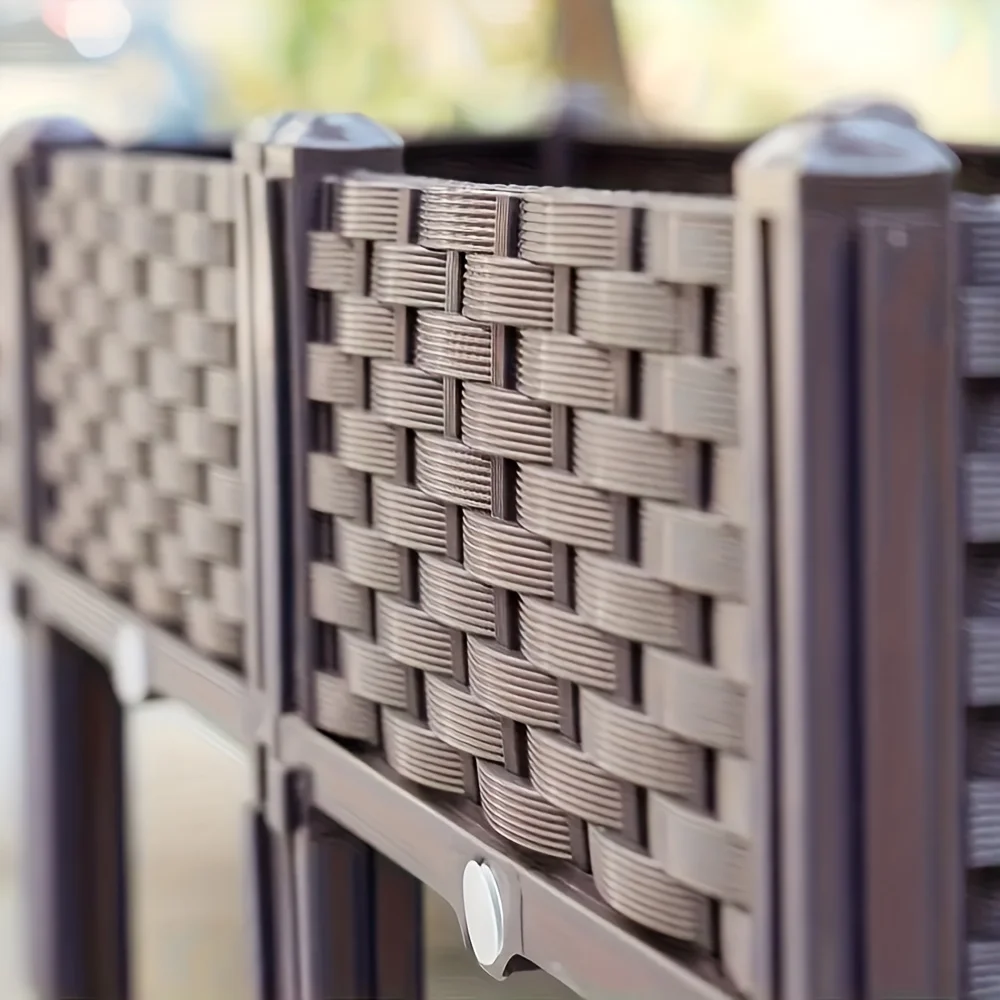 Weaving Elevated Garden Bed – Durable Plastic Elevated Flower Pot with Drainage Holes, Suitable for Terrace, Deck, Rectangular